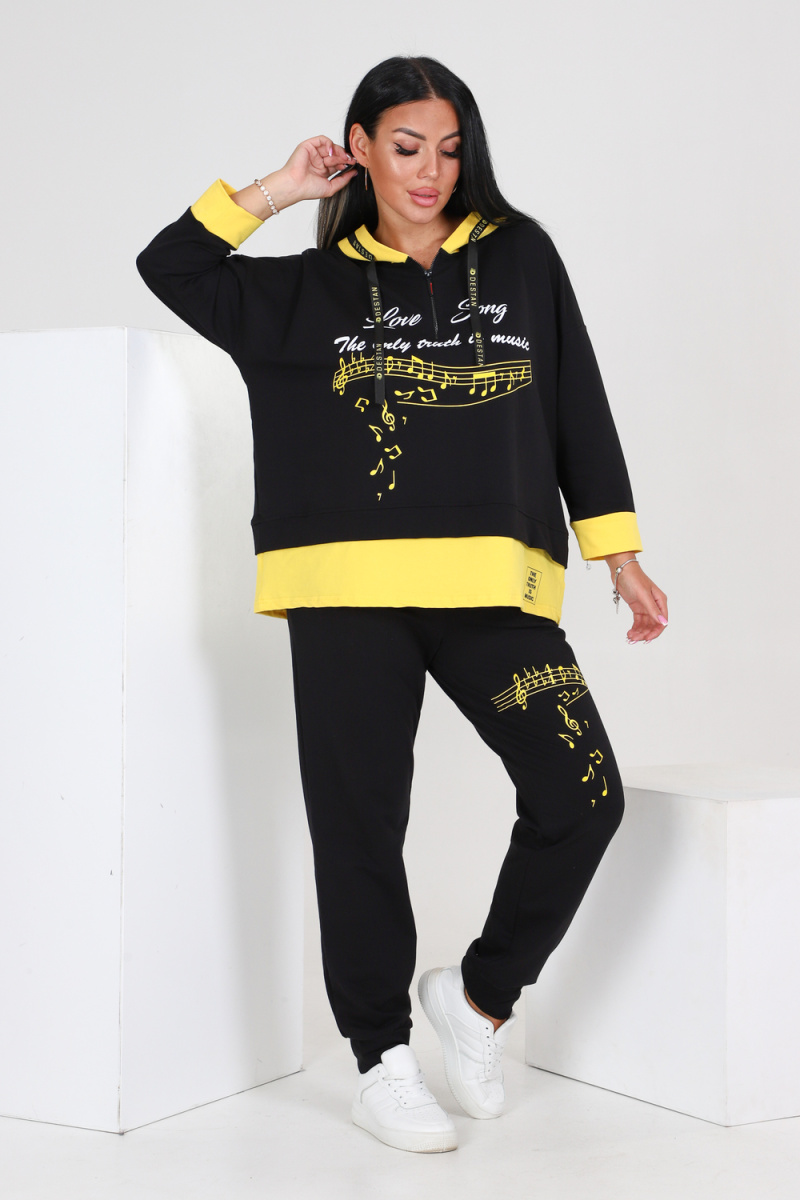 Представляем Вашему вниманию удобный и качественный костюм, изготовленный из футера 2х-нитка высокого качества. Костюм представлен в приятной расцветке. В нем Вам будет комфортно, так как ткань очень приятная к телу. Костюм внесет стильные нотки в Ваш гардероб и подарит Вам ощущение бесконечного уюта и комфорта. Спортивный женский костюм больших размеров состоит из спортивных штанов и худи с капюшоном.